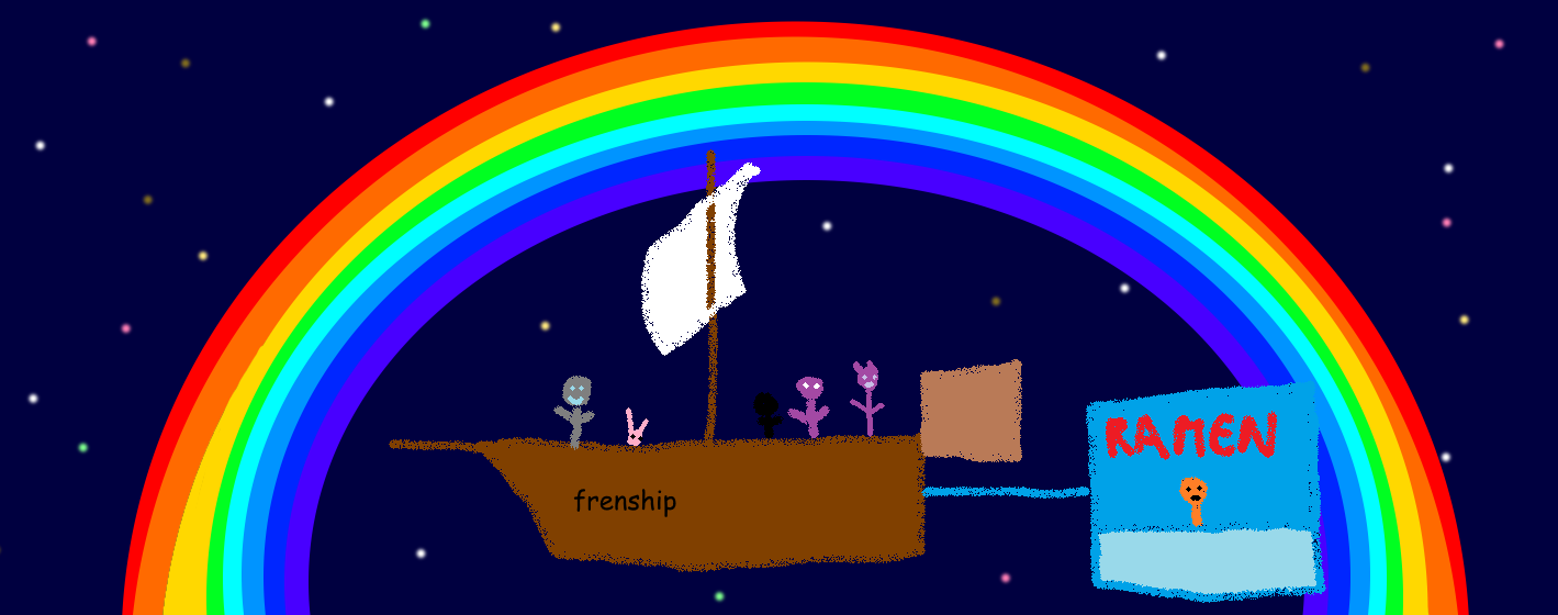 We managed to stop just in time in front of Ludwig's ramen stool, who's yelling at us until he realizes it's us.
