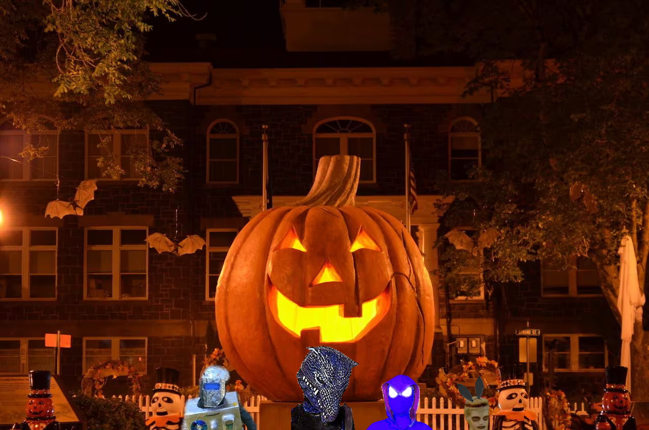 We make our way to the crowd, and as we approach, we see that the town square is 50ft away. They are all gathered around a giant carved pumpkin.