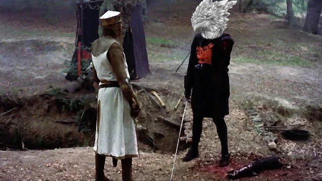 Or casts winds up and let us a scream "WHO DO YOU THINK YOU DEAL WITH?" and a bolt of lightning goes to the party, and the scene around us breaks even more.